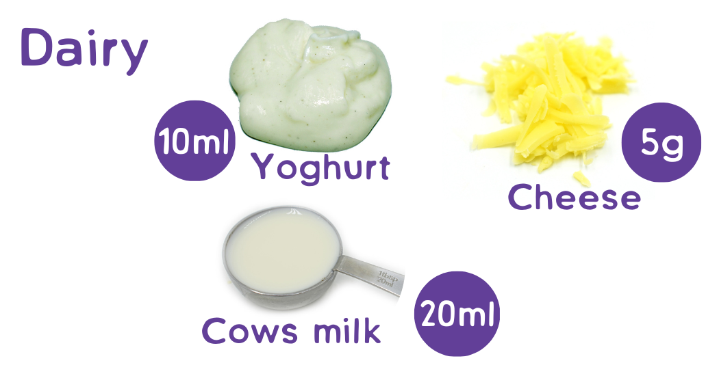 Cow’s milk should not be offered as a drink until 12 months old. Small amounts can be added to foods, and foods such as yoghurt and cheese are fine, but should not replace breastmilk (or formula).