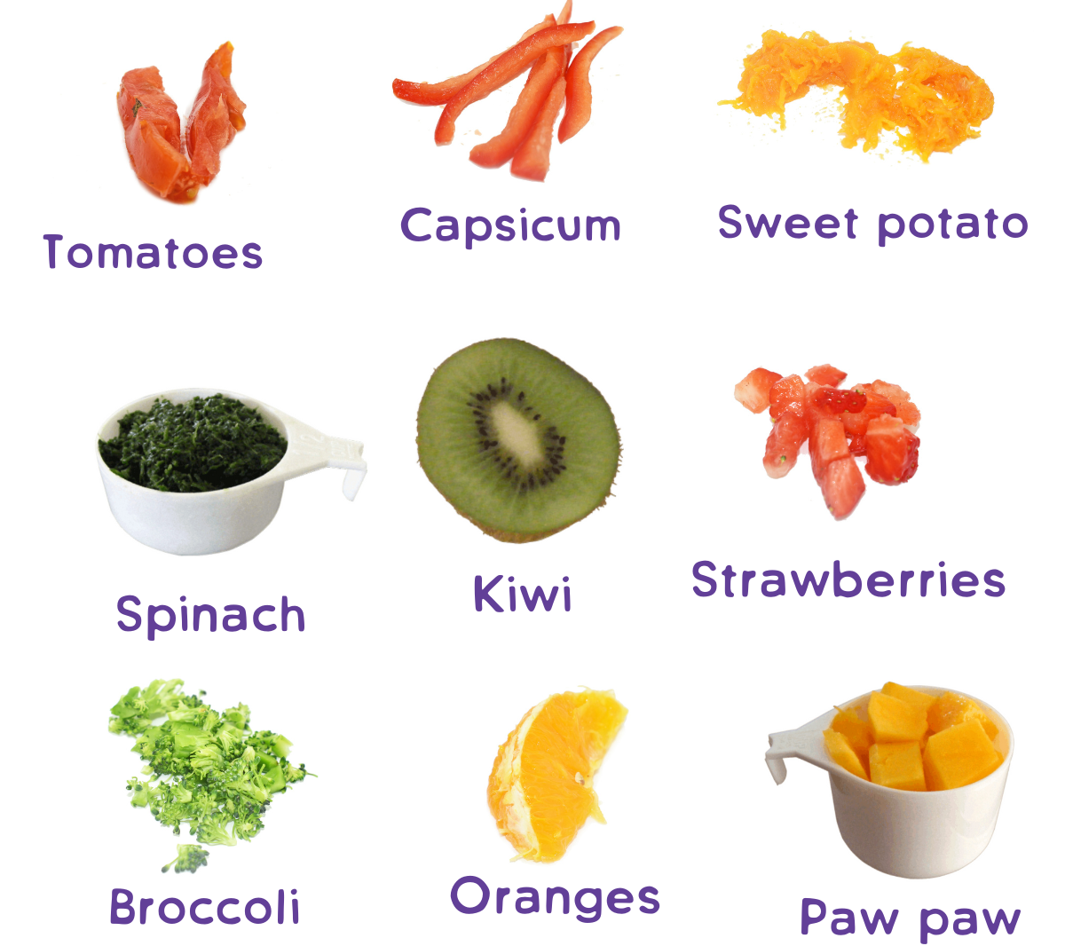 … you can help ‘boost’ the amount of iron that is absorbed in the body. Raw fruit and vegetables will contain higher amounts of vitamin C than cooked fruit and vegetables. Some soft vitamin C-rich foods are: kiwi fruit, strawberries, oranges/mandarin, grapefruit, tomato. Broccoli, cauliflower, cabbage, brussel sprouts and kale are also high in vitamin C.